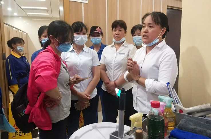 山水公司會安排專業的有資質的教學老師來教導前來學習的保潔師,從三個方面對保潔師進行培訓:一、崗位技能培訓,包括規范的作業,熟練使用專業的工具;二、服務態度的培訓,保潔也是服務行業之一,作為保潔師也應該具有服務意識,同時也注重心態的培訓;三、安全知識的培訓,注意車輛、電器的使用等等。
